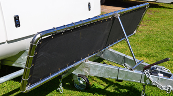 A High quality stainless steel framed stone guard with mesh screen and rubber mud flaps not only helps protect the Eco Tourer from stone chips but also deflects stones to the ground rather than toward your tow vehicle.